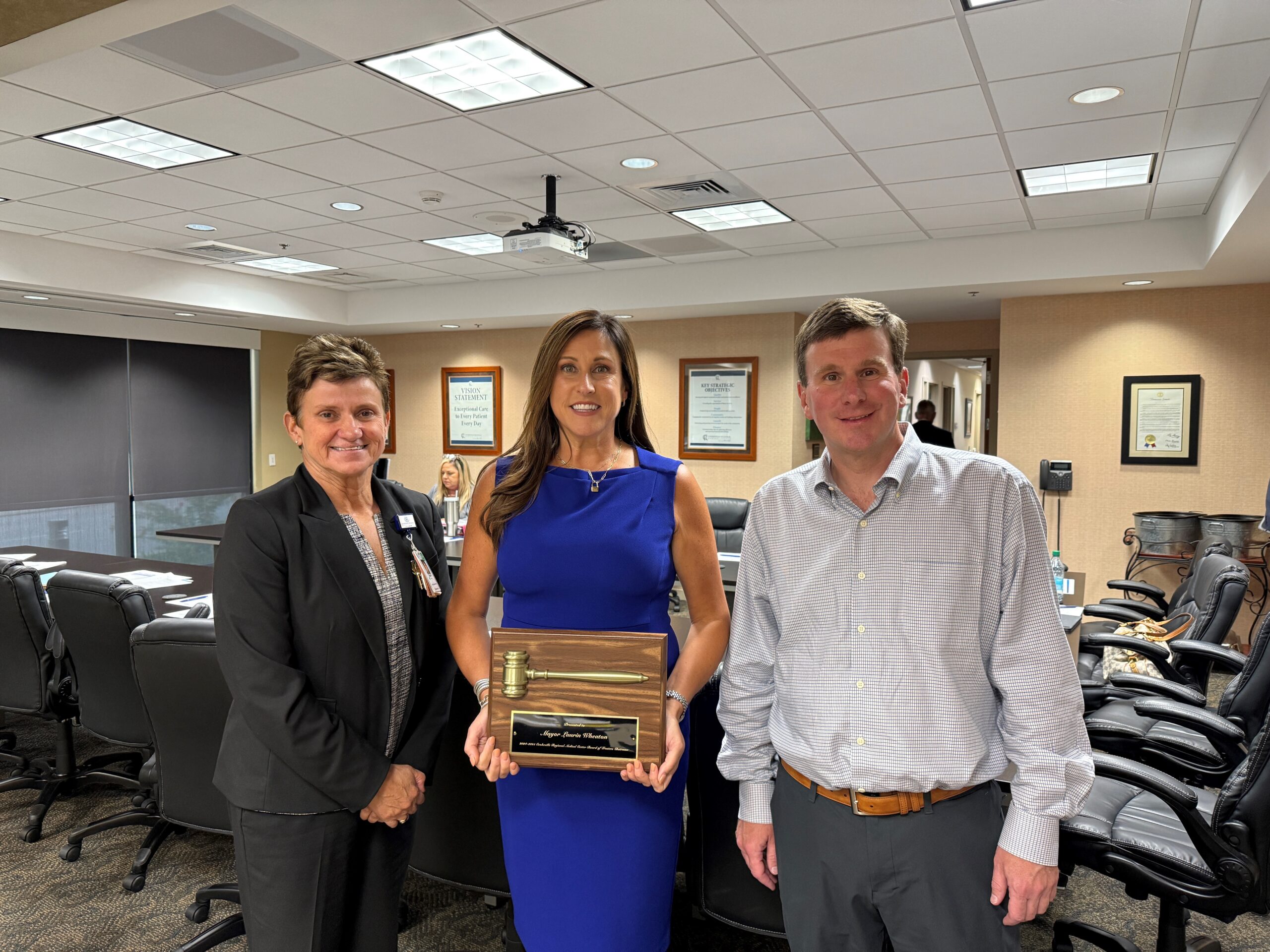 The Board of Trustees at Cookeville Regional Medical Center recognized outgoing chair, City of Cookeville Mayor Laurin Wheaton, for serving her one-year term as chair of the CRMC Board of Trustees.
